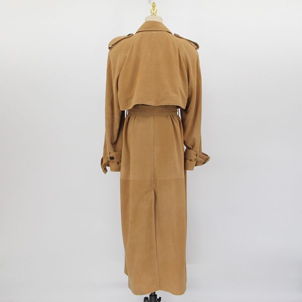 Abrigo largo de gamuza con textura suave y mate.