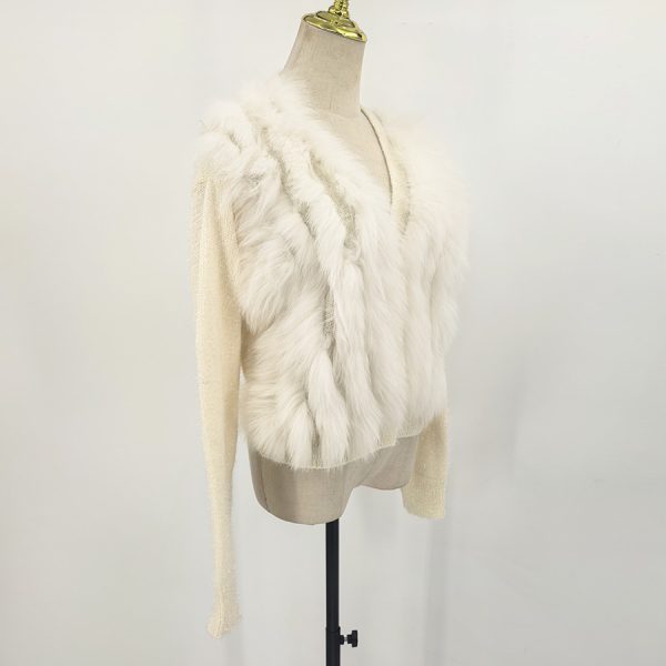 Suéter abierto con detalles voluminosos en el frente.